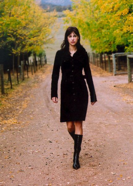 Bob Michaels 18-Nov-2003 at 18:45This is a great shot, but somehow the balance seems a bit disturbing, maybe it's how the road is crowning, and she's walking diagonally on the crown ..you could have done this as a still shot with her in the roadway center. As others have said, I would like to see more texture in the clothing/hair on this girl. That requires light reflected across the clothing, but I understand it is not always possible. Have to say, I still like the shot .. I love the black costume (except for that part of the belt which appears as a black horizontal band from her right arm to her waist -- think safety pins :) .. contrasted with the lovely yellows and greens of the trees .. the serenity of the country road -- I'd be thinking of this model and saving for a medium format camera.