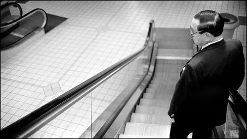 Shot in a mall in Orlando, I was being sneaky..I liked his hair. There is always good photos to be had on escalators.
