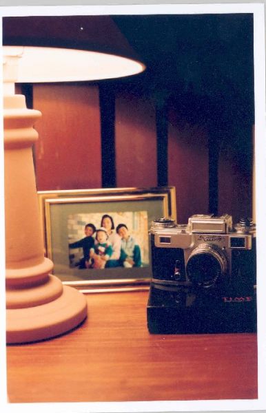 Thanks, I focused on the camera and had a very wide apeture. Only after the fact did I realise the focal point should have been the framed photo. I am going to retry and focus on the picture. Or should I keep it all in focus?