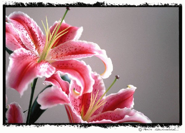 Akio... This is a tremendous shot. When I say almost prize winning it because it think that you have been a bit to hard cropping at the bottom of the picture. I would like to have seen just a little bit more of the lowest flower. I also like your frame. How do you do that? What film and what method of scanning, please?