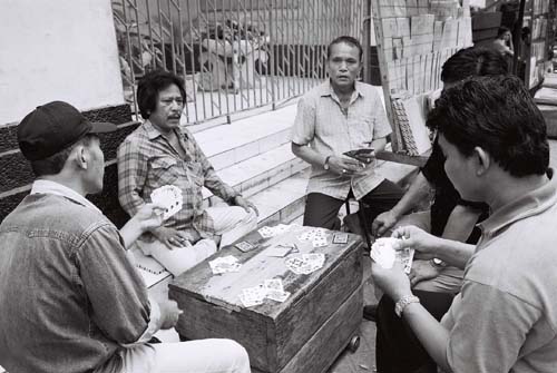 I spotted these group of men playing Gin Rummy outside the old Batavia museum. The G2 allowed me to get in close without intimidating them. 28mm lens