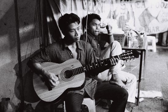 Indonesians are highly romantic and treasure musical instruments like the guitar. This picture was taken in the late evening in Jakarta at a side stall. TMX3200 handheld @1/8 sec