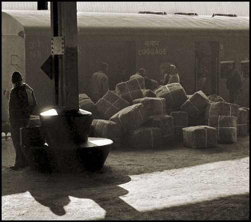 Early Morning on a Rajasthani train platform. This shot was taken from a slowly-moving train opposite. As we approached the station, I looked out the window, saw this scene (from the opposite angle) and sprinted to the door of the carriage. Enjoy this picture!