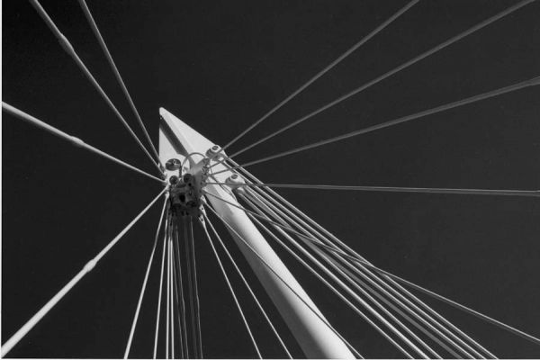 This is one of the first in a long time of a new series of footbridges over the Thames. On a clear day against a blue sky the new white superstructure looked like a gleaming metal web. Without a tripod though I had to sacrifice depth of field for a usable shutter speed. Disappointed that the fine detail has been lost in the scanning though.