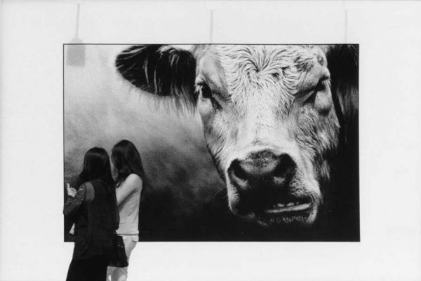 Paris: In the square of Place Vendôme there was an exhibition of photographs of cows. The pictures themselves were enormous and dwarfed the people around them. The strange shadows at the top of the frame were from the floods used for nightime illumination.
