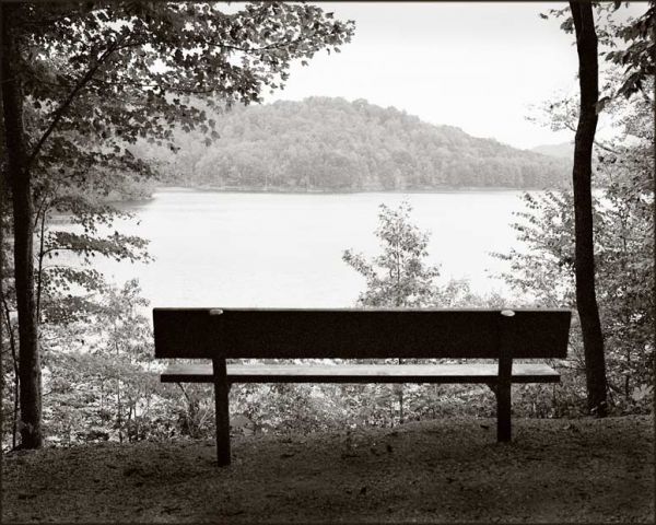 The bench is on a trail beside Paintsville Lake, Paintsville, Ky, USA.