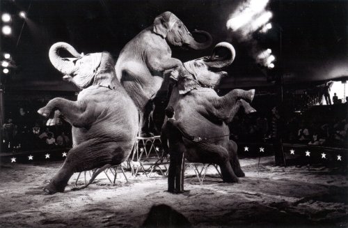 i do not mind that there is motion blur...blur, along with composition and scale contrast bet. man and elephants makes this seem quite dreamlike. the elephant handler seems quite sharp, too.