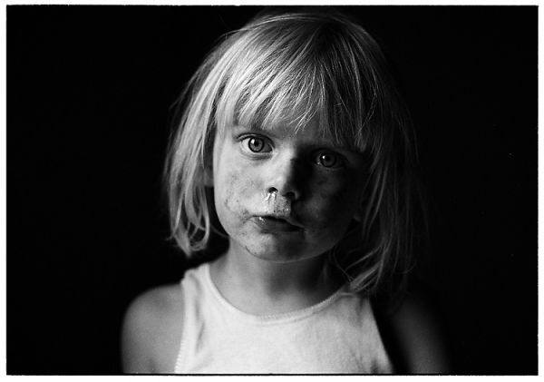 The use of light is very simple. To the left (of the camera) is the door to the garden, still open and since the weather is cloudy it gives a soft but still directed light on the face. The background is a wall approx. 1 meter behind the girl, and at least 4-5 stops below the metering on the foreground. Thanks for comments.