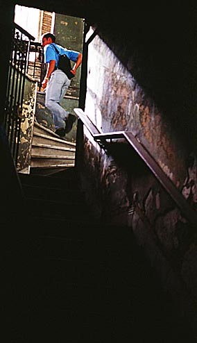 One of a series of photos I made during a visit to Havana, Cuba, last year. I was walking through Havana Vieja and seen a person going in the doorway of this building. When I got to the building I looked in and was captivated by the light falling on the stairs, but I felt the photo needed a human element. When a man came in the door and ran up the stairs, I knew I had my photo. G2, 28mm lens, Ektachrome 100 VS exposure unrecorded.