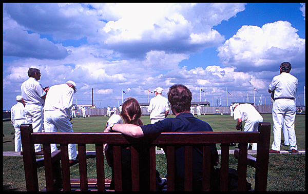 Photography for me is about having fun. I couldn't resist taking this shot of a young couple watching a bunch of old fogies like myself having fun their way. Ryde Bowling Green, Isle of Wight.