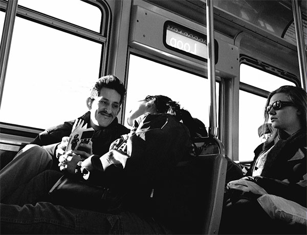 Nice snapshot! Despite the tricky lighting you managed to produce a picture with lots of detail in the couples faces. This picture looks great in B & W.