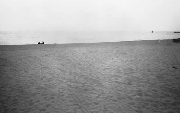 En la playa de la Mar Bella en Barcelona, al atardecer