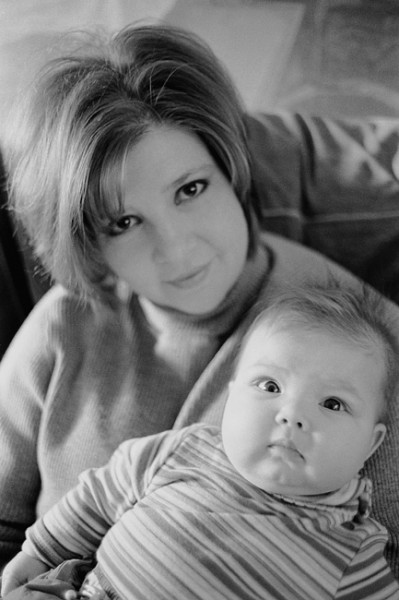 but you should have whipped out the tripod and got both of them in focus with a slightly deeper DOF IMHO. Nice expression on the baby's face, I like the wife's too. The placement of the two, top and bottom, left and right works ok too. A tighter crop perhaps taking out the babe's tummy might improve things a tad-the striped shirt of the baby sort of exaggerates her belly too much. The wrinkled fabric in the background distracts a little too. Overall though a pleasant portrait. I would humbly recommend the next time turning this kind of grab shot into a more deliberate and thought-out portrait, a small bit more attention to some details, and you'd have a real winner.