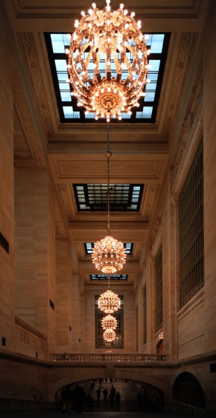 I was walking through Grand Central Station last year and I just liked this view. It was one of those rare occasions when I had my tripod. When editing this image I had to make several changes. The image was rotated slightly and I had to pull the corners a bit to square it up. It's so hard to get the rangefinders to line up perfectly. It's also been cropped and, I removed a dark rectangle at the edge of the top center. I think there was some scaffolding or something in the way. I had to build that last light bulb at the very top of the image from sampling pieces of the others. I could have cropped it out but, I wanted the entire chandelier in the frame. I took an image of the main hall that day and, its' ok but, I like this one better.