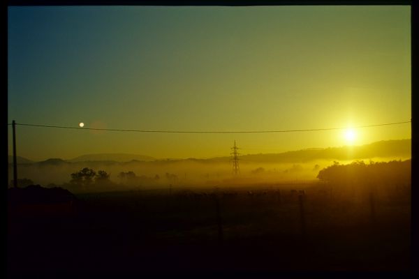 Very early in morning (around 6:00am at Italy), On the train from Roma to Florence, the sun is just raising, the place is very foggy, cant you see those animals? : ) token by Distagon 35/1.4
