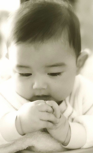 I love the softness of the tone, the angle of light, the details in the shadow. Very well done. And look at those eyelashes! Gorgeous baby. My little boy just turned 100 days yesterday. Such a joy they are.