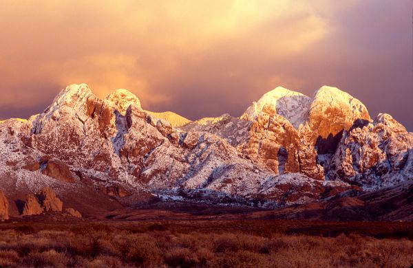 The clouds were lifting from the Organ Mountains east of my home and I could see snow cover as I returned home. I quickly grabbed my G2 and set up tripod to record the sunset. The sun can be very intense in the clear NM atmosphere and when it hit the snow, it absolutely glowed. The light had a very unusual yellow tinge which made it seem almost unreal. It looked more like frosting than snow. I shot 24 exposures of Fuji Astia 100f and a couple shots with my little LX-3 digicam. I tried to overlap shots for a possible panoramic stitched image, but the colors changed between the exposures such that I can't convincingly stitch them. I didn't really notice if the G2 chose a diff' setting on auto. I suppose I could have locked exposure, but I was too busy capturing the incredible scene in front of me. :-) I was afraid to move the G2 when tripping the shutter, so opted to use the timer. It seemed to work very well, even though the wind was quite strong. Linc Selected for the Hall of Fame on 2010/May/01
