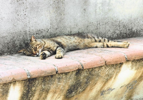 My wife and I were vacationing in Italy last summer and I came across this friendly cat in Tivoli's Hadrian's Villa. It was a warm day, and I was struck by how content the cat looked among all the surrounding people and how well it was camouflaged against the ancient stonework it was sleeping on.