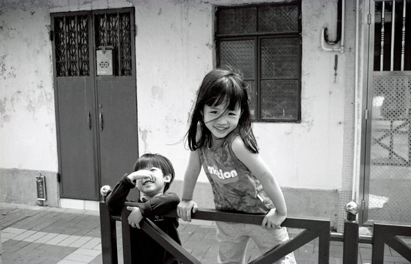 Simon Cheong 30-Mar-2002 at 10:46The smile is absolutely wonderful. For me, this is what taking pix of children is all about - the girl's expression and the hair being tossed in the wind - capturing a life with total abandon. The pix would even work without the little brother or with the gate at right being excluded. The architecture of the house at the back is anywhere from the 40s to the 60s and so this pix is perfect in B&W. Well done.