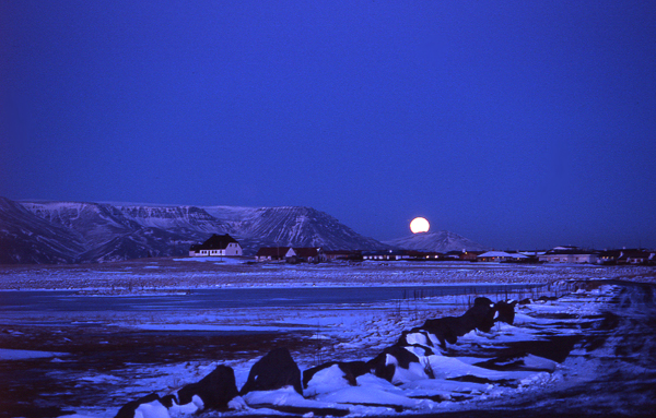 Couldn't keep the detail on the face of the Moon in this scan. The Aurora Borealis appeared later that evening (about as beautiful as I have ever known in the Icelandic winter) and I tried to photograph it. A dismal failure, unfortunately.