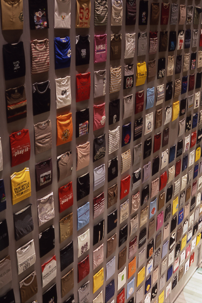 Very creative. Jerome is right: the illumination on the t-shirts get progressively brighter towards to the floor. You made the mundane look very interesting. Worked only because the shirts are colourful at random. Well done.