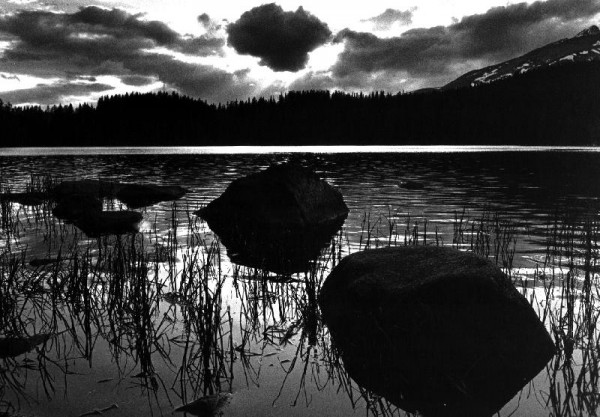 Strbske Pleso Lake, High Tatra Mountains, Slovak Republic. I was attracted by the rocks, which appeared me like the reflection of clouds on the water.