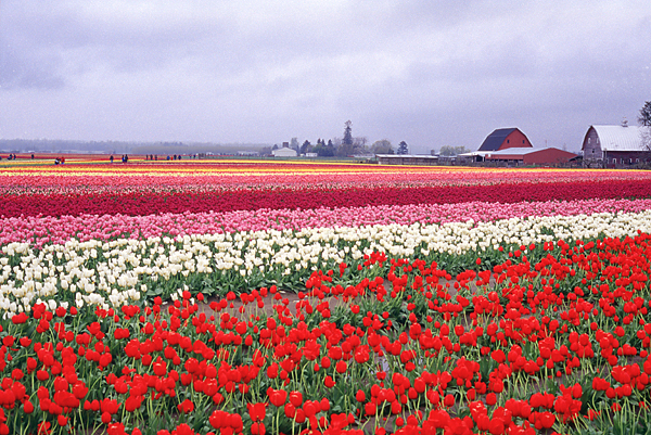 I tried to make the best of a wet, windy, cold, cloudy morning on my visit to one of the many tulip fields in Mount Vernon, WA.