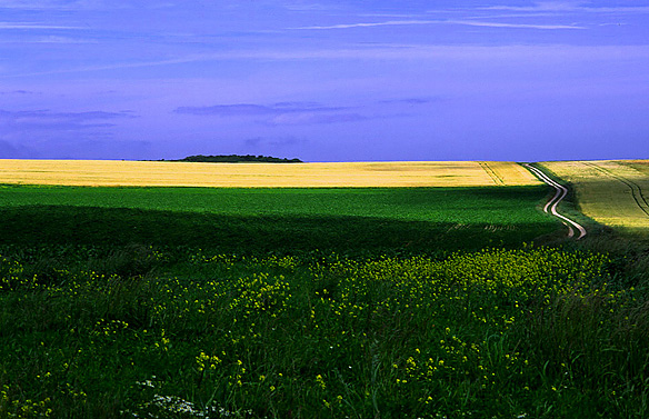 Nice landscape - I guess it's Picardie (F)? I'm not so sure about the foreground. It's unsharp and the yellows look strange. And yes, the border is only acceptable when viewing with a black background ...