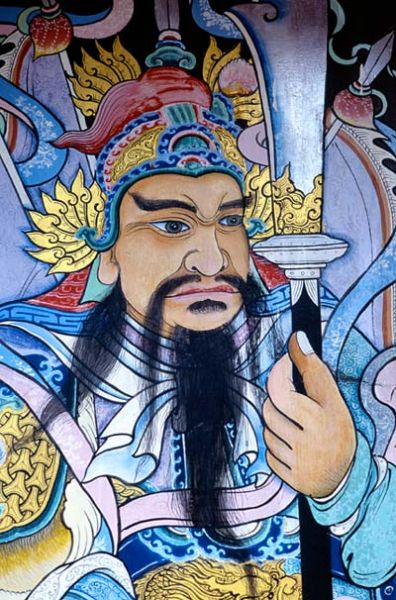 This is detail of a door in Bangkok -- at one of the major temples (whose name I can't remember). It's really in an interesting place, it's next to a very ornately tiled temple and if you were to turn around there's a school in the same courtyard -- kids were playing basketball as I took this. When I got home from this trip I looked through an old edition of Moon's Bankgok Handbook and lo and behold, the same picture. (Naturally, mine is better lit and sharper!) ;) G1, 90mm, Velvia. Natural lighting, slight crop.