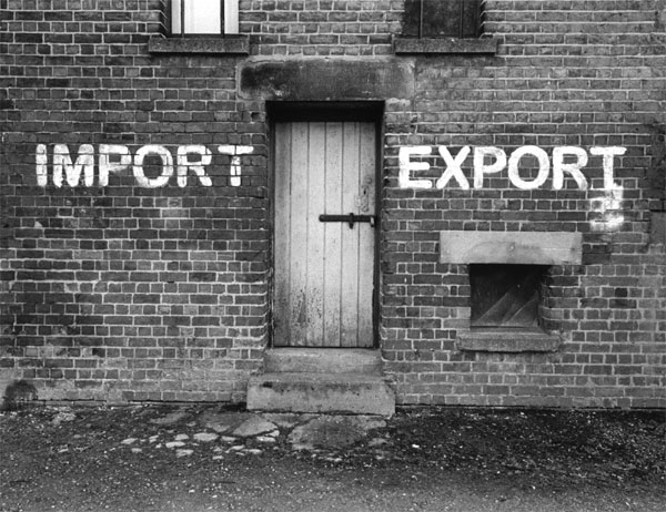 I like this better with more "breathing room". I just had a vision of two people standing below these signs. One under the import sign facing (our) left and the other under the export sign facing (our) right. Excuse my flight of fancy.