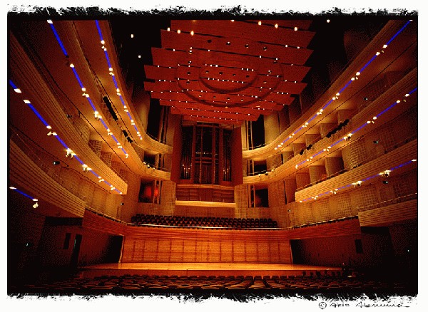 I find this a pleasing composition with generous warm colors that always appeal to me. It is, however, one of the few situations that I think would have been improved if it were populated with performers and an audience.