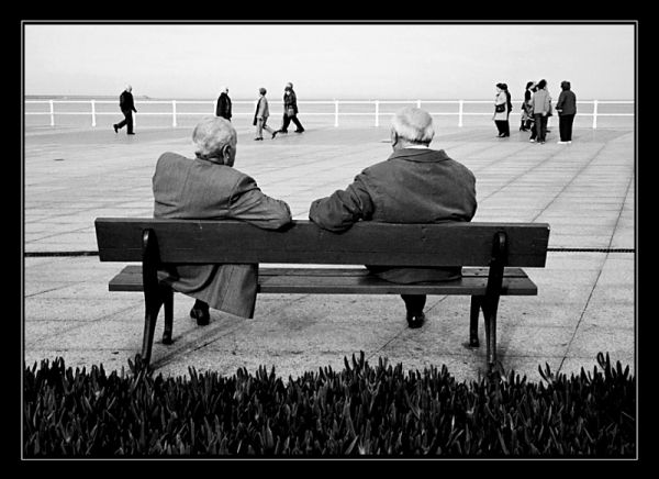 Cartier Bresson like. I always emjoy taking photos from this angle, it leave a bit of mystery to things. You just wonder what they are talking about, hoping it is a great tale.